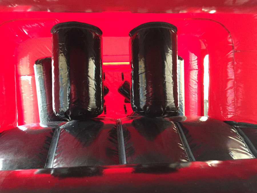 Once safely erected, this inflatable starts with two holes for participants to enter through; while inside they will face bash poles to navigate their way around, climb over or climb under before reaching the two standing X's. Beat these anyway you think best! Once competitors have managed this they must start their climb up to the top of the winners slide. The first person to touch down on safe ground again is the winner.