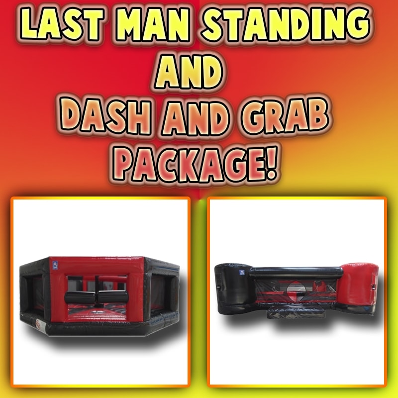 This package brings together two of the biggest inflatables that we have to offer... the Dash and Grab and Last Man Standing! Two massive inflatable games holding between 4 and 6 players each. Ideal for knockout type events to create some real funny moments.