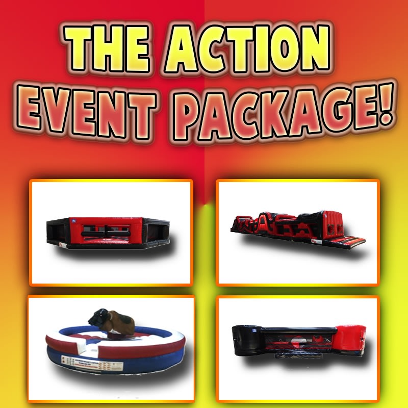 The action package specially tailored for events is here today for anyone hosting a large event to enjoy! It consists of the 4 biggest items in the Bouncy Kings arsenal, the Boot Camp, Last Man Standing, Dash n Grab and Rodeo Bull for hire... a mixture of items which are designed to give you the best thrill for everyone at your event as possible.